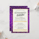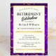 Gör ett stort påstående med vår Elegant Formal Pension Party bjudan! Den benvita centralpanelen "Pension Firande" är elegant skriven i en blandning av serif och script typsnitt, som är försedd med intrikata dekorationer, och ger dig en sofistikerad ram för information om anpassadet, inklusive namn, datum, adress och OSA. Ställd mot en rik lila och guld marmor mönster. Designad för både familjeföretag och företagsarrangörer.
