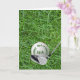 Golf boll på grönt gräs med golf klubb för Pension. Namn kan redigeras eller tas bort.