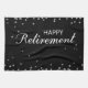 Ett fint meddelande omgivet av silver-gnistor, titta på svart. En mycket elegant Grattis, souvenir, gåva och party som är nödvändig för en man eller en kvinna på Pension. Säg att du är stolt över dem och önskar dem det bästa.