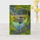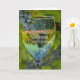 En grattis på ett pensionskort som har lite vin humor. En vacker bild av ett glas vin på en vingård. Nu är det dags för vin!