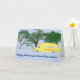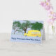 Pension-körkort för Skola Buss med gult i buss, illustrerade barn och buss på buss, träd, blommor och en väg. Tack vare Hungryjpeg för en del av inslag i designen.