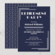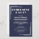 Art Deco Elegance Pension-partiets inbjudan till Inbjudan dina gäster till snyggt pension party med denna vackert designade inbjudan. Den mörk blått bakgrunden och det benvita hörnet gräns skapar ett sofistikerat utseende, medan texten i en blandning av konst deco och sans serif typsnitt lägger till en tidlös appell. Baksidan av inbjudan innehåller en detaljerad bild deco mönster, som ger en vintage-inspirerad avsluta. Perfekt för både företagsevenemang och familjemöten. anpassadets utformning erbjuder en balans av enkelhet och elegans.
