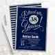 Partiinbjudan till pension för kvinnor eller manar. Elegant inbjudan-kort i marinen med faux glitter silver. Innehåller typsnitt för skript för snyggt. Kan vara personlig till vilket år som helst. Berätta om du behöver anpassa dig ytterligare.