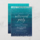 Den här eleganten och festinbjudan på 3,5 x 5 tum i pension innehåller silver (simulerad folie) som överensstämmer med brev som säger "Pension Party" i ett vackert skript. Bakgrunden är en dramatisk vattenfärgsbild av blått och tealt, som kan se ut som beachy eller nautisk - eller bara ren elegant. Anpassa inbjudan med egen information - ett enkelt sätt att skapa ett kort för personlig. Kortets baksida har en silver-prickad linje mönster - återigen med trendiget blått/grönt som bakgrund. Ett enkelt och elegant sätt att fira ett pension för gästerna i inbjudan.