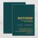 Snyggt modern enkel teal och guld pension inbjudan till festen.