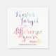 Ett vackert pension eller en uppskattande napkin för lärare, sjuksköterskor, läkare, pastorer osv. Perfekt för pension party eller andra firande. Den här underbara "glöm aldrig skillnaden du har gjort"-talesättet visas i en söt vattenfärgstypografi. Kan vara personlig med ett namn och date - eller annat meddelande.