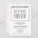 Denna inbjudan till pensionärsfest presenterar ett PM med "utanför kontoret för alltid" som ett roligt sätt för vänner och familj att fira pensionären.