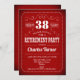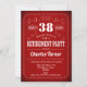 Inbjudan till pensionärsfest för män eller kvinnor. Elegant röd och vit retrodesign med stilfull typsnittsfont.
