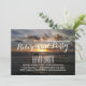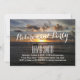 Stiliga inbjudningar till pensionärsfest vid solnedgångsstrand.
