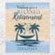 En stilfull avkopplingssoffa för strand pensionärsetikett, bestående av en akvarell kustnära sandstrand och blå havs bakgrund med palmer, hängmatta och fåglar. Ett trevligt sätt att gratulera någon i stil vid pensionering. All text kan anpassas efter behov och sedan personifieras med ett namn. Perfekt för en anställd, kontorspersonal, kollega, familj eller vän. Även bra för att fira en speciell högtid.