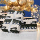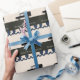 Pensionerad begravningsentreprenörgåva som slår in papper, svart hearsedesign för vintage på kräm- bakgrund med marinen.