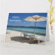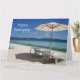 Fotografiskt kort av ett strandparaply och lounge-säten - perfekt för helgdagar, farewells & pension - anpassar fram- och invändigt meddelande. Stora storleka perfekter för kontorsfarewells.
