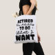 En lekfull och djärv textdesign med frasen 'PENSIONERAD' i stora, rundade bokstäver högst upp. Nedanför står 'Förmågan att göra' skrivet i en fantasifull, kursiv stil, vilket ger en touch av elegans. Längst ned sticker 'Vad jag VILL' ut i en kraftfull, iögonfallande stil, som betonar frihet och val. Den övergripande kompositionen är balanserad och engagerande, med ett monokromt färgschema som förstärker den roliga och avspända känslan.