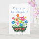 Ett nätt pensionkort med enboxas fullt av ljust färgade blommor, från en handpainted papper collage av Judy Adamson. Matcha gåvor och andra hälsningkort med denna planlägg också tillgängligt i mitt lager.