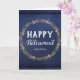 Vackra och eleganta typsnitt säger "Grattis på pensionen!". Inuti kortet finns justerbar text med ett lyckönskande meddelande. Blå bakgrund med enkel falsk guldblads krans.