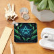 Den här vita nyckelkedjan har en pulserande pentagram för grönt omgiven av löv och ett kosmisk himmel avslutat som ett oljefärgtryck.