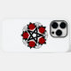 Svart pentagram med mönster, dekorerad med blomning, röd ros med löv på vit bakgrund. Tatto stil.