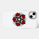 Svart pentagram med mönster, dekorerad med blomning, röd ros med löv på vit bakgrund. Tatto stil.