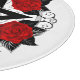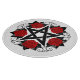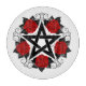 Svart pentagram med mönster, dekorerad med blomning, röd ros med löv på vit bakgrund. Tatto stil.