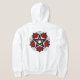 Svart pentagram med mönster, dekorerad med blomning, röd ros med löv på vit bakgrund. Tatto stil.