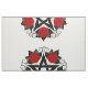 Svart pentagram med mönster, dekorerad med blomning, röd ros med löv på vit bakgrund. Tatto stil.
