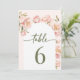 Elegant rosa blommigt peonies blommar bröllop bordsnummer.