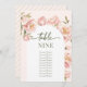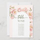 Elegant rosa blommigt peonies blommar bröllop bordsnummer med gäster namn sittkartor.