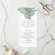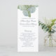Blåväghudingar med dammig blå bakgrund (pantone 16-4010tpx eller hex #8c9pappa) på det redigerbara ceremoniprogrammet i bröllop. Perfekt för vår, sommar, trädgårdsbröllop. Se hela det samordnande delar i uppsamlingen av blått vattenområde Bröllop.