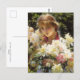 A fine art postcard with the painting by Charles Courtney Curran (1861-1942), Peonies (1915). An American Impressionist painter of figures and landscapes. A beautiful young woman holding a bouquet of peonies in white and pink.