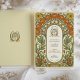 Gratulera till din speciella dag med den här lyxiga Art nouveau-inspirerade bröllopsinbjudan, som innehåller en pulserande blommigt av rödpeonier, gyllene gul ros och blåblå accenter. Den intrikata gräns visar linjer som flödar, anger detaljerat och spolar i grönten, alla kännetecken för det tidslösa Art nouveau estetiska. Den harmoniska paletten med rött, gult, blått och grönt skapar ett romantiskt och sofistikerat utseende. Med anpassadets text och elegant är inbjudan perfekt för vintage, trädgård eller naturtemat bröllop, vilket garanterar att evenemanget börjar med ett oförglömligt konstnärligt drag.