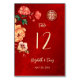Det här färgstarka kinesiska bordsnumret i bröllop har röd, orange, gult kinesiska blommor på en ljusröd bakgrund. Matchande kinesisk bröllopsinbjudan finns tillgänglig.