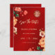Den här traditionella kinesiska bröllopsinbjudan innehåller färgade peonier i rött, gult och neutralt på en strålande röd blommigt. Spara datumtexten i ett handskript för eleganten. Matchande kinesiska bröllop-produkter tillgängliga.