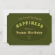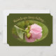 Födelsedagskortet inspirerades av ett foto av en mycket blöt päronblomma. Blomens huvud fyller det mesta av utrymmet. Färg är ett ljus rosa och smågrisarna är täckta med de glittrande regndropparna. De få löven och bakgrunden är mycket grönt, en liten ant klättrar upp i en av dessa löv. Fotot ser färsk ut. Text på framsidan: behållan Regndroppar faller... Texter inuti: men det kommer inte att dröja länge förrän lycka | Önskar en sunt födelsedag. Det finns också två linjer att lägga till avsändare. Anpassa födelsedagskortet genom att skriva över exempeltexterna. Om du vill ha mer anpassning klickar du på knappen Anpassa och användor designredigeraren.