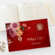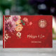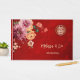 Den kinesiska gästen bok i bröllop har söt lila röd och gult blommor och en lyckosymbol för dubbla i guld på en skakande ruby röd bakgrund. Matchning av bröllop kostym finns tillgänglig. Om du klickar på: Anpassa mall- kan du anpassa texterna fram och rygg tillsammans. Om du vill ha fler ändringar eller om texterna fram och rygg ska ändras på ett annat sätt går du till avsnittet lagrar genom att klicka på Redigera design.