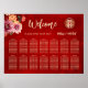 Det här traditionella kinesiska sätesschemat för bröllop har färgstarka kinesiska blommor med en lyckosymbol för guld dubbla och en välkommen text i ett handskrivet skript för elegant på skuggad blommigt röd bakgrund. Med 140 anpassade namn i ett modernt sans serif-teckensnitt.