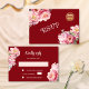 Vattenfärgade blommor på en maronröd bakgrund. OSA Kinesiskt Bröllop-kort.