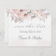 En inbjudan till rosa bröllop spara datum med en vattenfärg som målats upp i mjuka rosor och silver eucalyptus greenergiy mot en vattenfärg tvättar bakgrund. Färg-paletten för denna inbjudan är endast rosa, silver grått och vit.