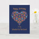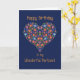 Ett söt Birthday Card för en partner, med ett hjärtformat Blommönster på en djup blå bakgrund, inspirerat av Östra European Folk Art. En del av Posh & Painterly People Heart-samlingen.