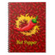 Röd chilipeppar med flamcirkel över sömlös bakgrund. Anpassningsbar.