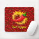 Röd chilipeppar med flamcirkel på löstagbar, sömlös mönster-bakgrund. Anpassningsbar.