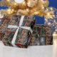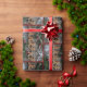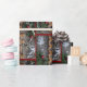 Inpackning av papper som presenterar fotoet av pepparkakakakor (med bitor som tas ut ur dem) och julgrönska.