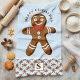 Fira högtidsperioden med denna anpassade pepparkaksgubbe God Jul kökshandduk. Med en söt pepparkaksgubbe med röd slips, en festlig hälsning "God Jul" och en personlig monogram på en blå bakgrund, ger denna handduk en rolig och festlig touch till din köksdekor. Perfekt för att ge bort eller lägga till en personlig touch i ditt julhem.