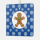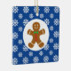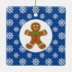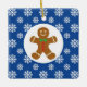 I denna julkeramiska prydnadsföremål framställs en pepparkaksgubbe omgiven av mönster i snöflingor på blå bakgrund. Det är ett bra tillägg till era juldekaler.