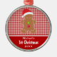 Gullig grafisk tecknadclipart en pepparkaksgubbe som dekoreras med ett rött, knäppas, och en grönt knäppas att ha på sig en röd och vitsanta hatt. Bakgrund avbildar är ett röd gingham kontrollerat mönster. Personifiera det fasta röda området som är längst ner av prydnaden med din bebis första och strömåret. Klicka "skräddarsy den" för att göra även mer ändringar till designen, genom att resizing, att tillfoga, eller att ta bort inslag eller att ändra stilsorts- eller textformatet. Också tillgängligt i en flickaversion och 3 tvilling- versioner.