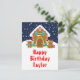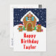 Den här söta och festliga födelsedagskortet kan anpassas med ett namn eller titel som son, sonson, systerson, vän etc. Designen visar ett sött pepparkakshus dekorerat med röda och gröna julgodisar. Bredvid huset finns söta pepparkaksgubbar med presenter, iklädda tomteluvor och en halsduk. I bakgrunden syns en marinblå vinterhimmel med eleganta fallande snöflingor. Texten är skriven med en fet och festlig teckensnitt. Detta är perfekt för jul och vinteruppehåll.