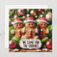 Pepparkaksgubbar utklädda som tomte med texten "Vi kom för kakor".
