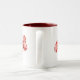 Röda och vitpepparmintgodisar på vitkaffemuggen med den ljusa röda insidan.