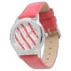 Barns röda läderremsa av rostfritt stål med en bild av rött och vitt candy cane rand och silver klocka ansikte som tillval. Se matchande fyrkantig knapp, rund charm, fyrkantig ensidig akrylnyckelkedja och fyrkantigt halsband. Se hela samlingen av Wrist-vaktmästare under kategorin ACCESSORIES i avsnittet HELGDAGAR.