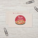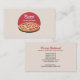 Ett affärskort för din pizzeria-restaurang, mat lastbil, mat eller matkock. Den består av en pizza med pepperoni, oliver och basilika placerad på en träskiva och en röd halvcirkel. På baksidan finns information om anpassadet av fullt, inklusive öppettider.