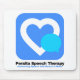 Anpassad musmatta för behandling av Peralta Tal. Logotyp med företaget namn i svart skrift, med vit bakgrund.